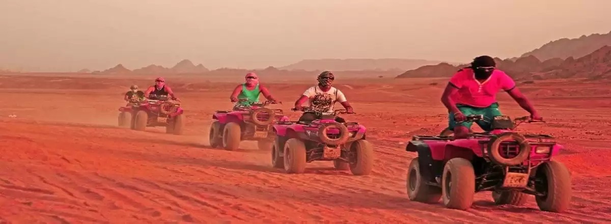 Ride out into the beautiful scenery of the Sinai desert on a quad bike. Drive into the desert from Sharm and enjoy playing on the dunes. In the desert you will meet up with Bedouins who will treat you to a camel ride and a bit of Bedouin charm.